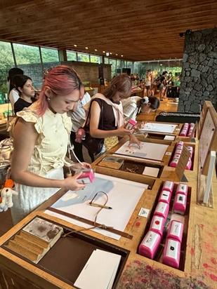 三日目は西部地域を中心にフィールドワークを行いました。涯月(エウォル)では、海沿いの街並みを歩きながら、地域の変化と観光地化の実態を観察しました。カフェが立ち並ぶ海岸通りでは、済州ならではの開放的な景観と現代的なライフスタイルが調和し、新しい観光文化を生み出している様子を目にしました。学生たちは、こうしたカフェ文化が地域経済や若者の文化発信に果たす役割についても意見を交わし、観光と地域再生の関係を考察しました。お茶博物館(オソルロックティーミュージアム)では、済州の気候や火山灰土壌が生み出す茶の文化に触れ、伝統と産業が結びつく地域の特色を学びました。なお、学生たちは体験型のイベントにも参加しました。