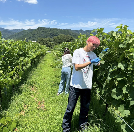 私たち中川秀一ゼミナール日本ワインプロジェクトは、2018年より、埼玉県秩父市の株式会社秩父ファーマーズファクトリー兎田ワイナリー様にご協力いただき、「兎田ワイナリー様との共同企画実施によるワインの可能性の探求」というテーマで活動しています。月に1.2回ワイナリーを訪問する際には、ブドウ畑の作業のお手伝いをし、その後各学年で設定した研究テーマについてヒアリング調査を行ったり、実際に市場調査をさせていただいたりと、精力的に研究活動を行っています。また、定期的に秩父市で行われるお祭りへの出店のお手伝いにも参加し、秩父市の文化に触れる機会も大切にしています。