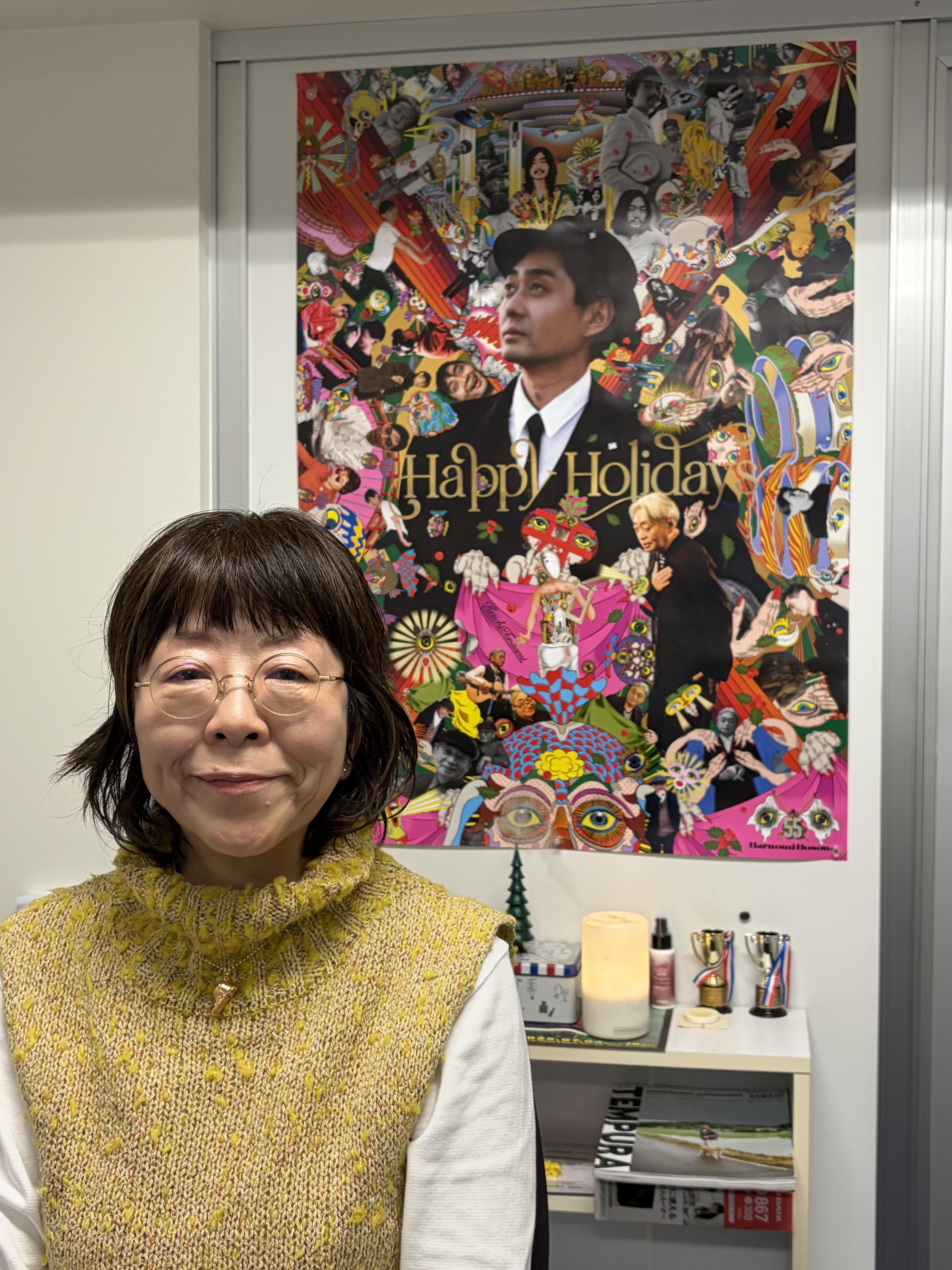 - 高野公三子先生 後ろはパルコ開業55周年広告ポスター