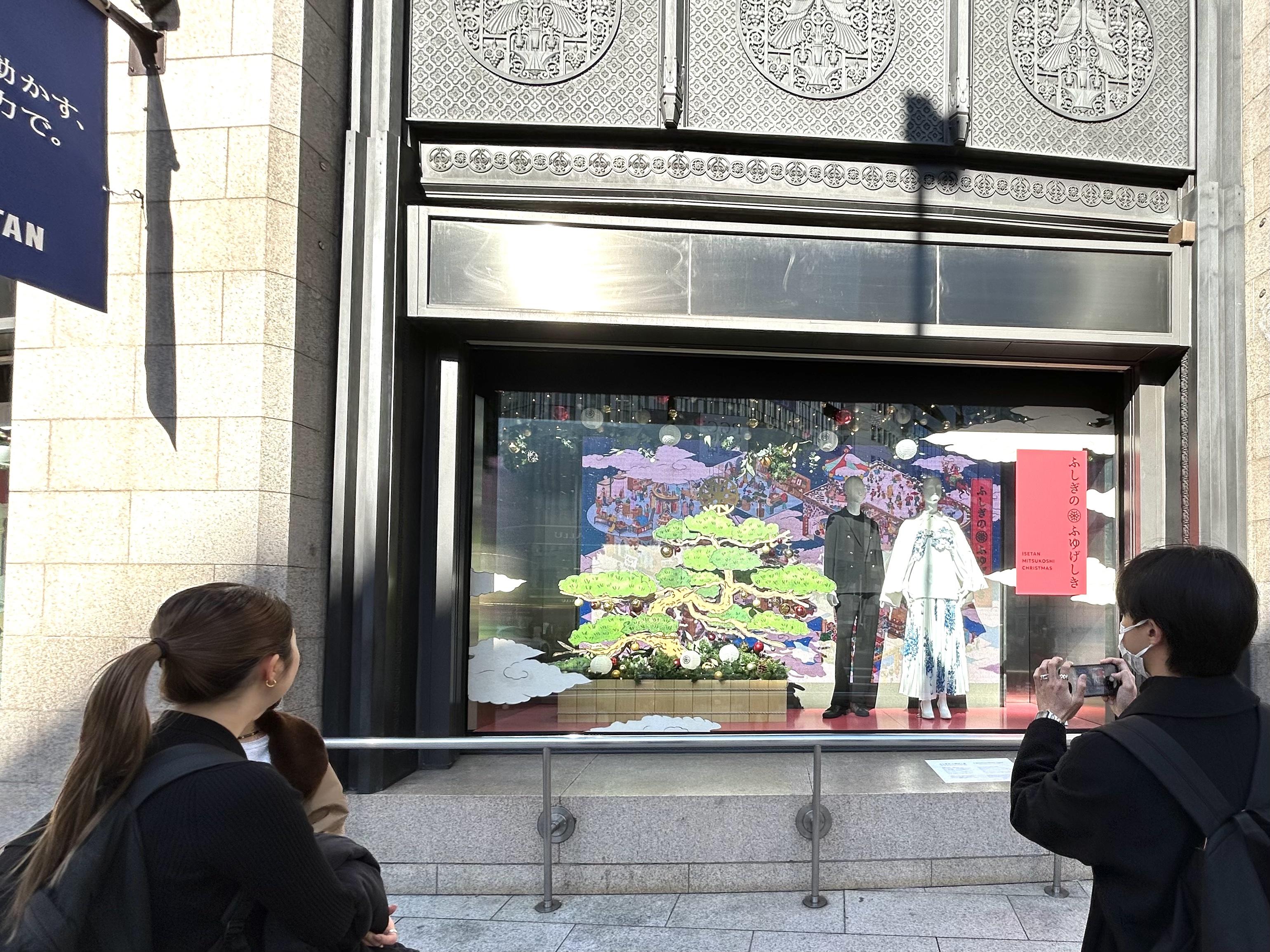 - 今秋学期は、パルコの関連会社のメンバーと共同で「クリスマス・ディスプレイリサーチ」を実施。江戸と現代が融合した空想の百貨店を舞台に、人びとや動物たちが思い思いにクリスマスを楽しむ、伊勢丹新宿店のウィンドウディスプレイ「ふしぎのふゆげしき」の前で。