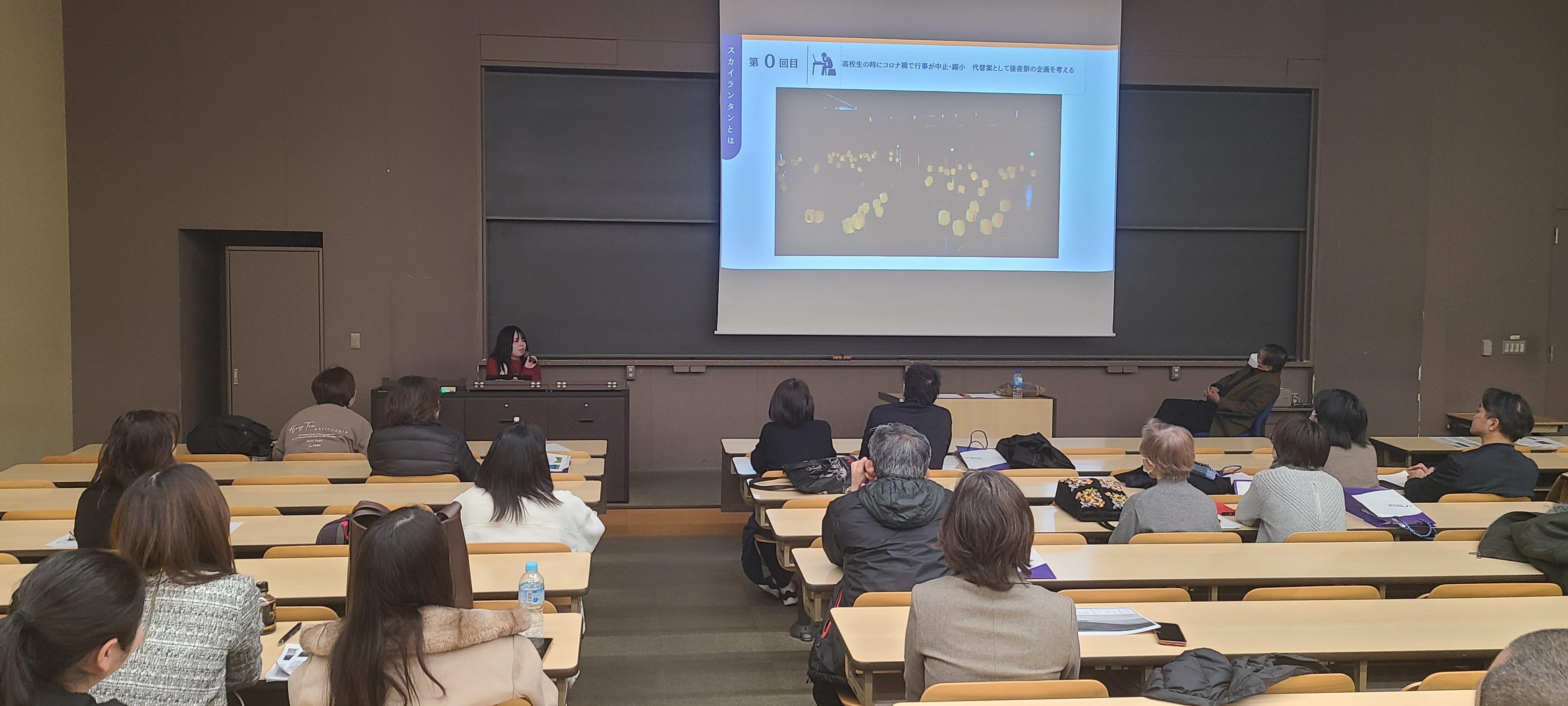 13時からリバティタワーの2階の教室に戻り、学生たちの研究報告を行いました。保護者の方の前での報告は、日ごろの報告よりも力が入ったようです。2時間にわたり、10組が報告を行いました。学会でも通用するような報告がいくつもありました。15時過ぎに散会となり、皆で集合写真を写しました。