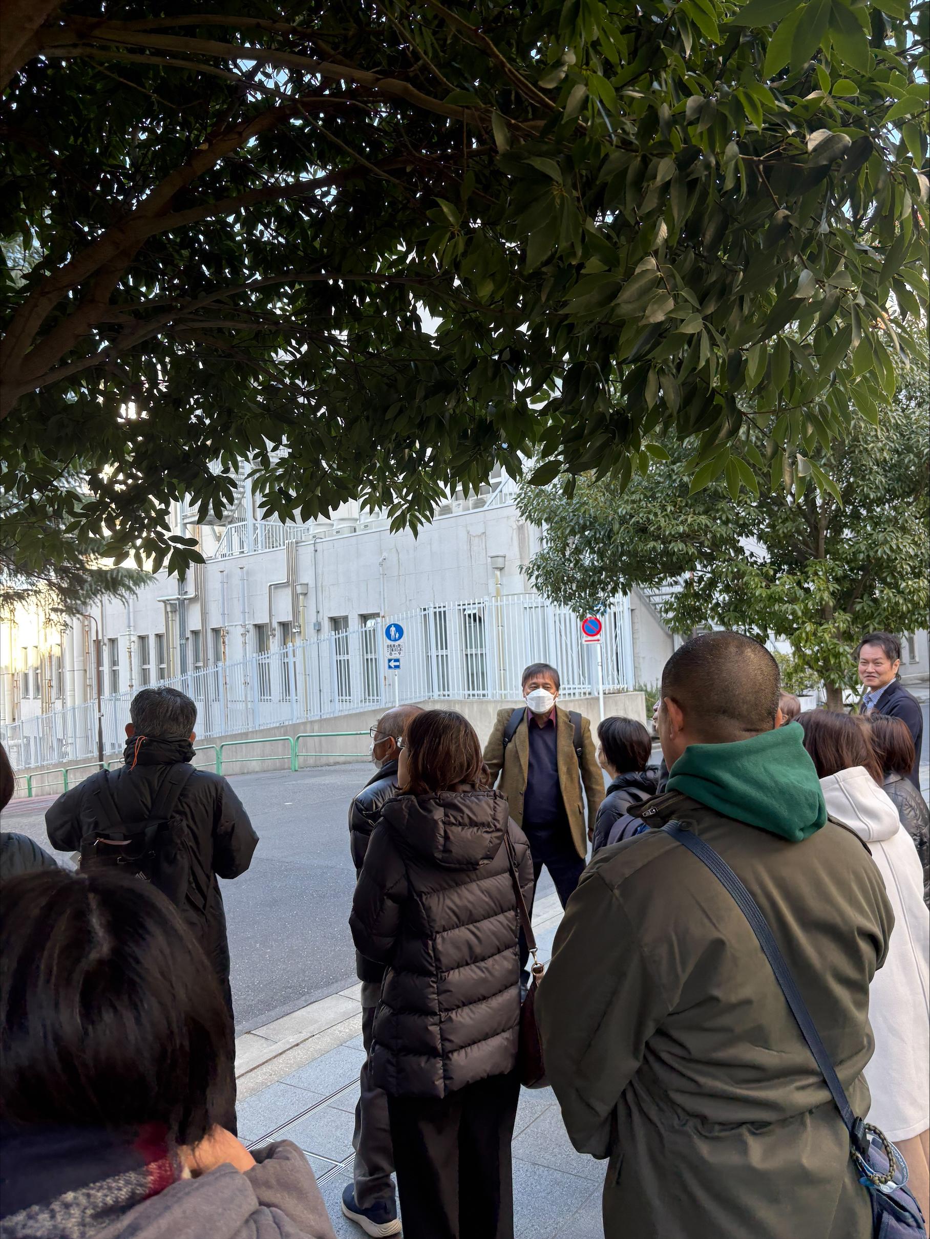 11時から駿河台校舎の見学を行いました。まず、大学の許可を得てリバティタワー1Fに入り口がある図書館を見学しました。学生の勉強している書架の階だけではなく、本がぎっしり収まっている数階にわたる書庫の見学も行いました。明治大学の無数の蔵書が書棚に並んでいる様子は圧巻です。迷路のようですので迷子にならないよう気を付けていただきました。次に商学部の業務を行っている商学部事務室に行き、事務室の役割を事務の方から説明いただきました。かつては学生が手続きを行っていた事務室でしたが、今や手続きはインターネットで行うためかつてほどは学生が来ないとのことでした。先生方の研究室のある研究棟を抜けて、学生がいつもゼミの授業を受けている12号館の情報教室を見学しました。リバティタワーに戻った後は23階の岸本辰雄ホールに行き、眺望を眺めました。17階に降りて、日ごろ学生たちが食事をとっている学食で同様に食事をしていただきました。
